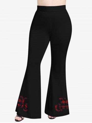 Plus Size Merry Christmas Tree Star Snowflake Plaid Print Flare Pants - Black - 6x
