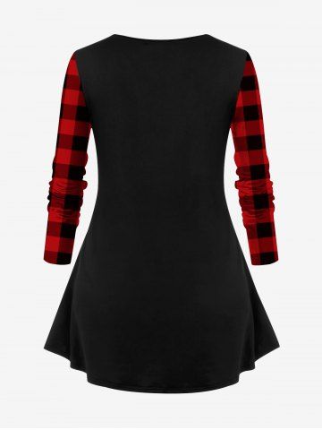 Plus Size Merry Christmas Tree Star Snowflake Plaid Print Long Sleeves T-shirt - Black - 5x