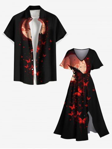 TRENDING NOW > Plus Size Moon Butterfly Print Split Hawaii Midi Dress