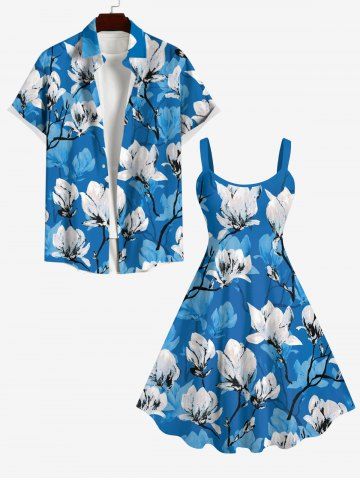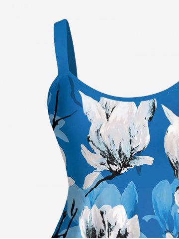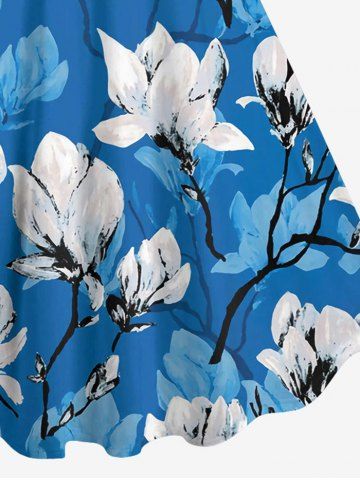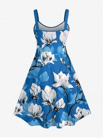 Plus Size Ombre Flower Print Backless Hawaii A Line Tank Dress - Blue - 6x
