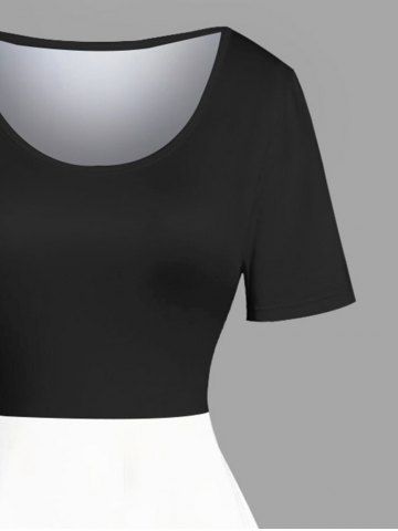 Plus Size Rose Flower Leaf Paint Splatter Print Hawaii Vintage Dress - Black - Xs
