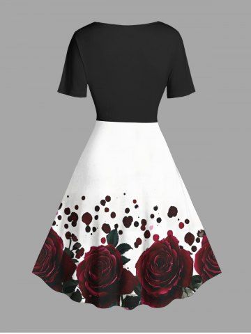 Plus Size Rose Flower Leaf Paint Splatter Print Hawaii Vintage Dress - Black - 2x