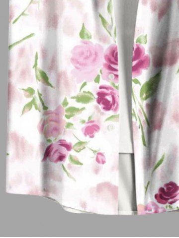 TRENDING NOW > Plus Size Rose Flower Leaf Print Buttons Pocket Hawaii Shirt For Men