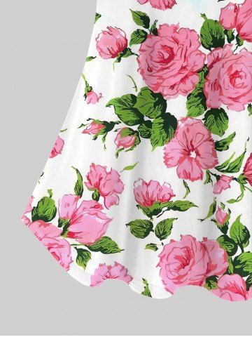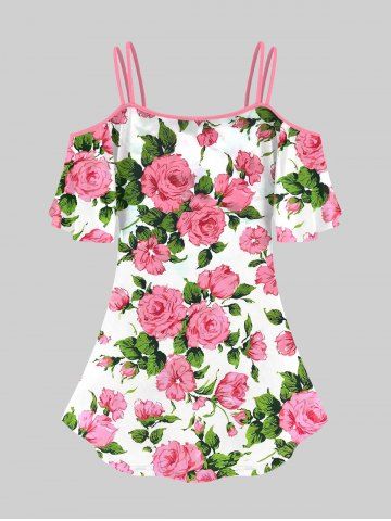 TRENDING NOW > Plus Size Rose Flower Leaf Print Cold Shoulder T-shirt