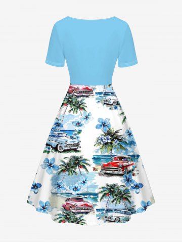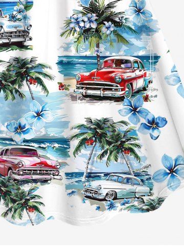 k*****u5Sea Flower Car Coconut Tree Print Cinched Dress and Button Pocket Shirt Plus Size Matching Hawaii Beach OutfitColor: LIGHT BLUEI loved this product. My husband and I wore it to a baby shower and we got lots of praise. I have to say the sizes are bigger than I expected. I bought medium size but I think I will buy Small next time for an even better fit. The clothing material is also high quality.