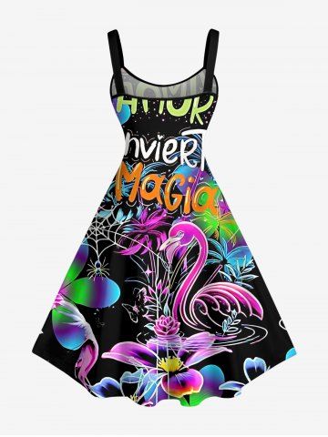 TRENDING NOW > Plus Size Spider Web Butterfly Swan Letter Flower Print Hawaii A Line Dress