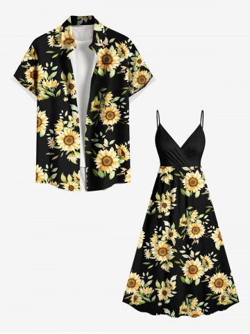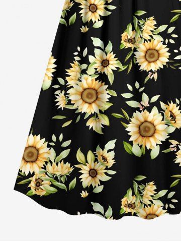 Plus Size Sunflower Leaf Print Hawaii Surplice A Line Cami Dress - Black - 1x
