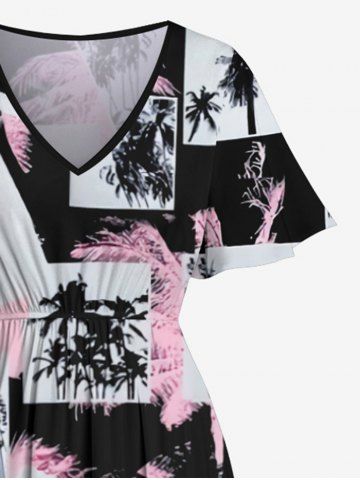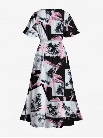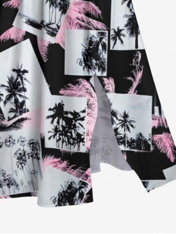 Plus Size Tropical Coconut Tree Photos Print Hawaii Split Midi Dress - Black - 2x