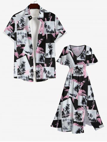 TRENDING NOW > Plus Size Tropical Coconut Tree Photos Print Hawaii Split Midi Dress