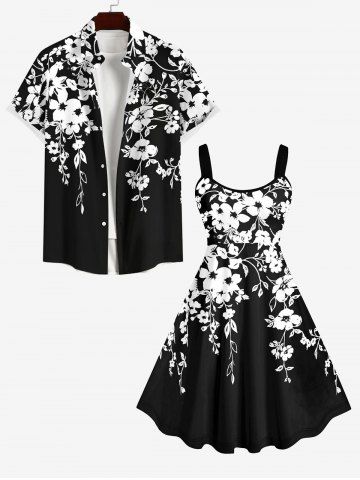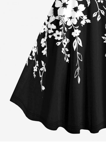 Plus Size Two Tone Flowers Leaf Print Hawaii Tank Dress - Black - L