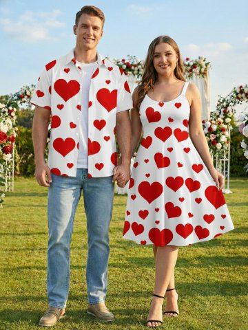 Valentine's Day Heart Print Plus Size Matching Outfit For Couples - Red