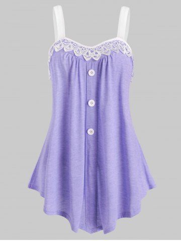 Lace Panel Button Embellished Casual Tank Top - Light Purple - M