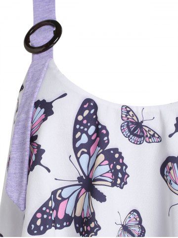 O Ring Butterfly Print Tank Top - Light Purple - L