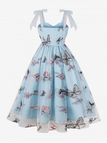 Vintage Dresses > Butterfly Flower Embroidery Mesh Zipper Tie Bowknot Tank Vintage Dress