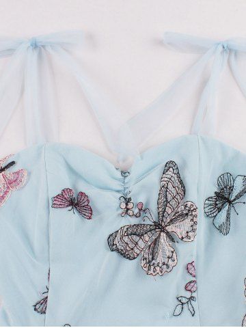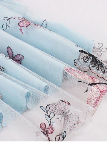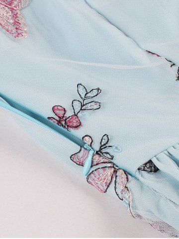 Butterfly Flower Embroidery Mesh Zipper Tie Bowknot Tank Vintage Dress - Light Blue - Xxl