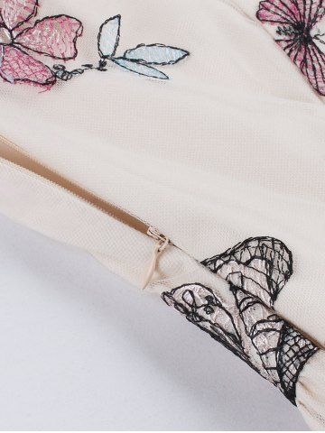 Butterfly Flower Embroidery Mesh Zipper Tie Bowknot Tank Vintage Dress - Apricot - M