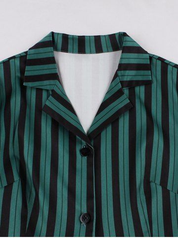 Button Down Stripes Shirt Collar Vintage Dress - Green - Xl
