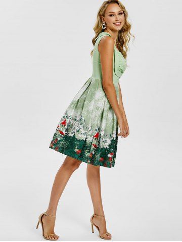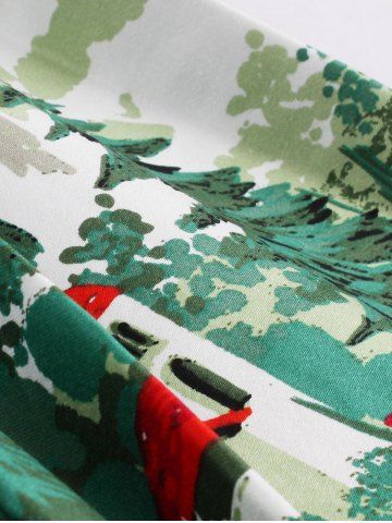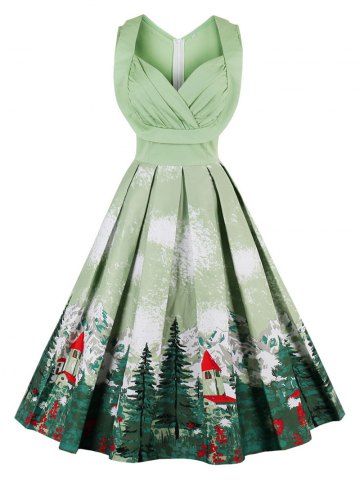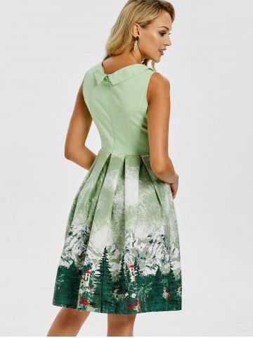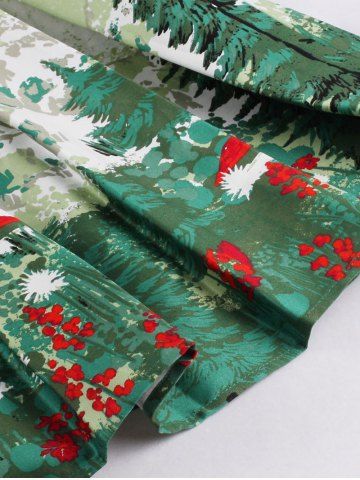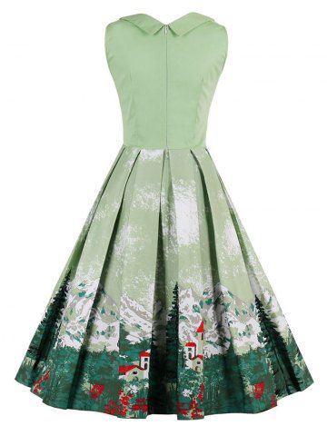 Vintage Forest Print Ruched Pin Up Dress - Pistachio - M