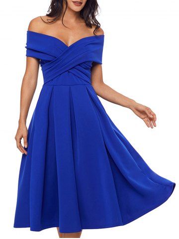 Cross Front Open Shoulder Prom Dress - Blue - M