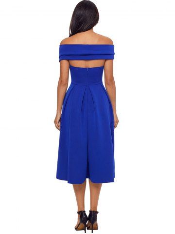 Cross Front Open Shoulder Prom Dress - Blue - S