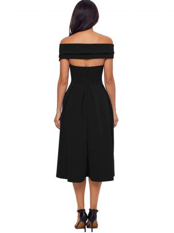 Cross Front Open Shoulder Prom Dress - Black - S