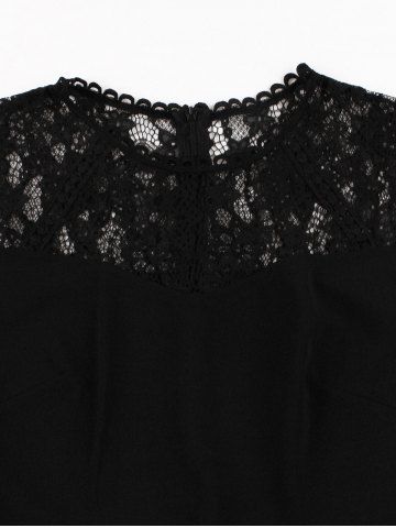 Floral Lace Panel Patchwork Zipper Sleeveless Vintage Dress - Black - Xxl