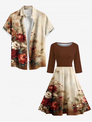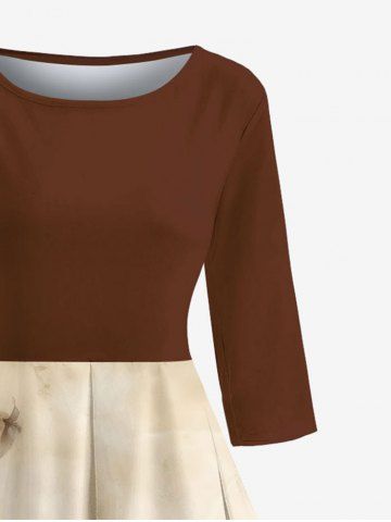 Flower Leaf Branch Print Hawaii Ombre 50's Vintage A Line Dress - Brown - Xl