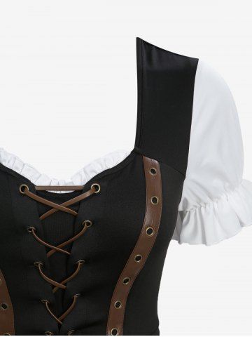 Lace Up PU Strap Grommets High Low Asymmetric Dress - Black - Xxl