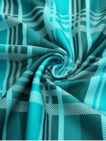 Plaid Print Button Twist Ruched Halter Backless A Line Dress - Green - L