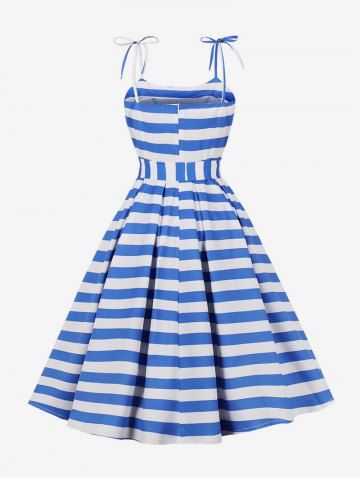 Plus Size Cherry Dots Heart Print Pleated Tie Bowknot Vintage Dress With Belt - Blue - L