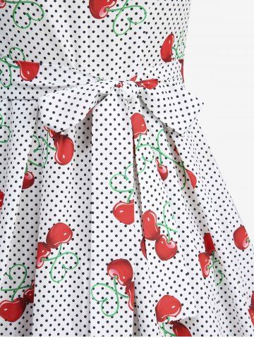 Plus Size Cherry Dots Heart Print Pleated Tie Bowknot Vintage Dress With Belt - Multi-b - S