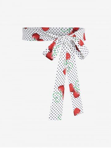 Plus Size Cherry Dots Heart Print Pleated Tie Bowknot Vintage Dress With Belt - Multi-b - M