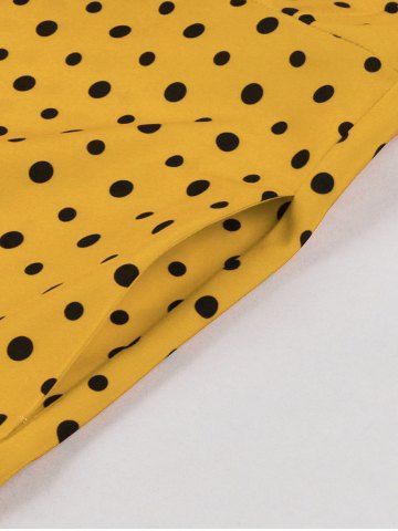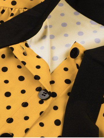 Polka Dot Print Buttons Tie Bowknot Flatter Sleeves Vintage Dress With Belt - Yellow - M