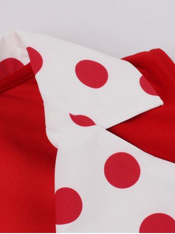 Polka Dot Print Turn Down Collar Buttons Vintage Dress With Belt - Red - M