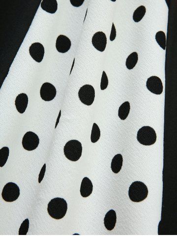Polka Dot Printed Patchwork Vintage A Line Dress with Removable Tied Belt - Black - L