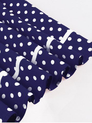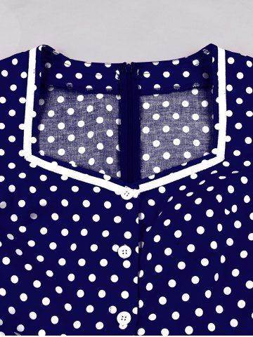 Polka Dots Print Buttons Square Neck Zipper Vintage Dress - Blue - L