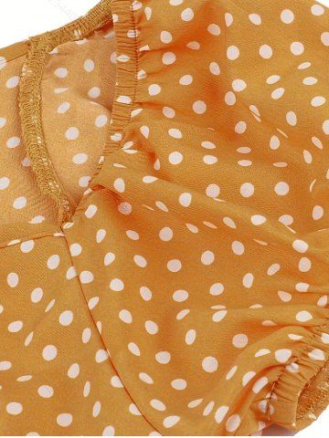 Polka Dots Print Cinched Zipper Back Vintage Dress - Yellow - Xl