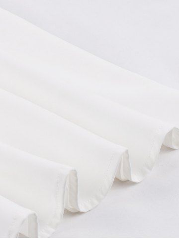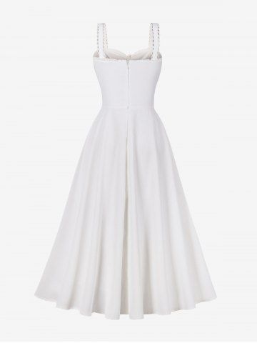 Solid Color Cinched Ruched Bowknot Lace Trim Tank Vintage Dress - White - M