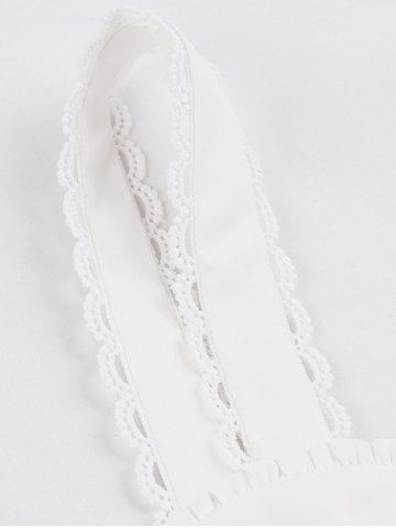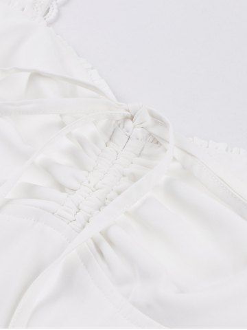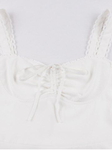 Solid Color Cinched Ruched Bowknot Lace Trim Tank Vintage Dress - White - L