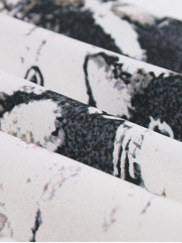 Two Tone Rose Flower Print Tie Bowlknot Ruched Back Vintage Dress - White - Xl
