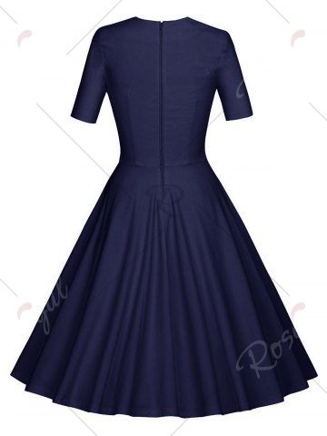 Vintage Ruched Pinup Skater Party Dress - Purplish Blue - 2xl