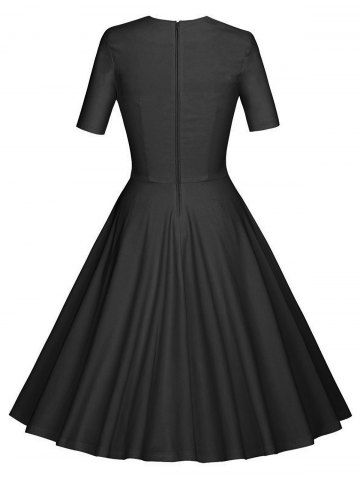 Vintage Ruched Pinup Skater Party Dress - Black - L