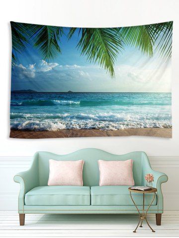 Coconut Tree Sea Print Tapestry - Multi - W59 X L51 Inch