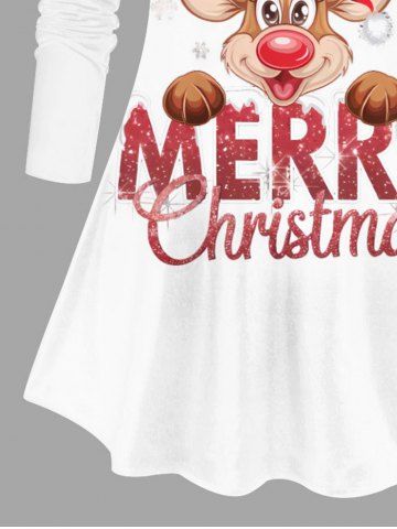 Plus Size Women's Christmas Elk Snowflake Print Long Sleeves T-shirt - White - M
