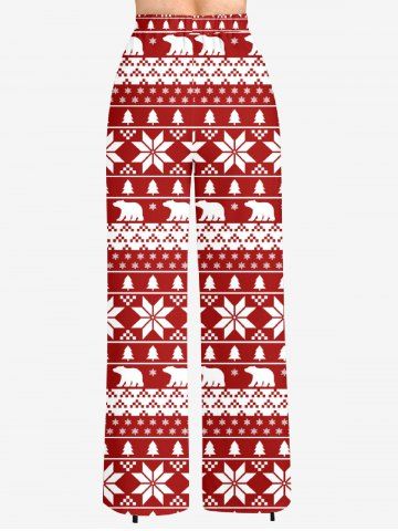 Plus Size Women's Christmas Tree Snowflake Polar Bear Print Drawstring Wide Leg Pants - Red - M