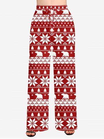 Women Pajamas > Plus Size Women's Christmas Tree Snowflake Polar Bear Print Drawstring Wide Leg Pants