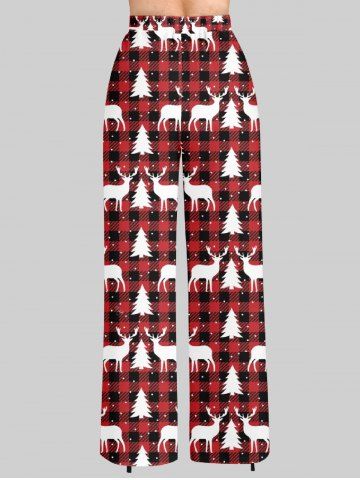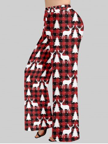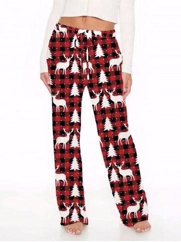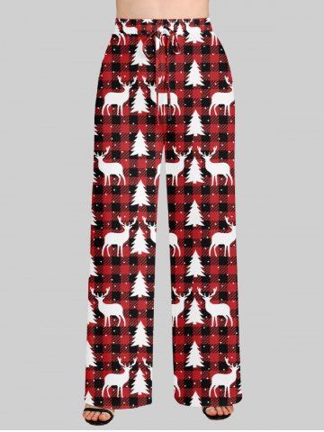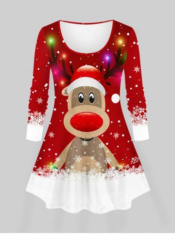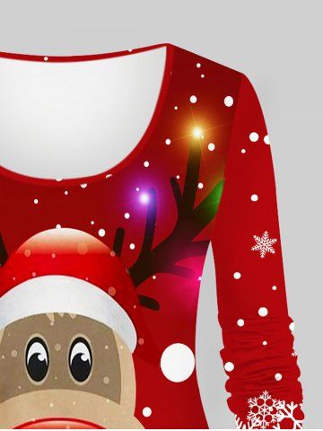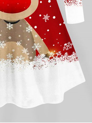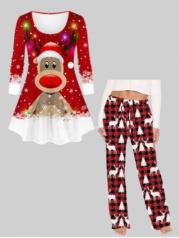 Women's Christmas Elk Snowflake Print Plus Size Matching Pajama Set - Red