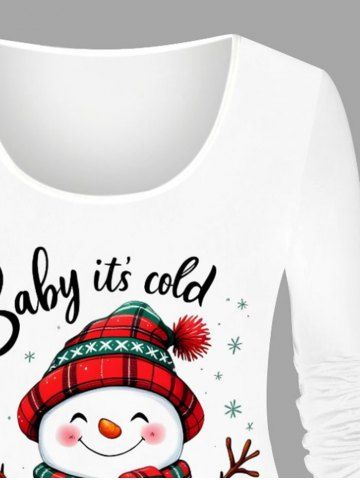 Women's Christmas Snowman Snowflake Print Plus Size Matching Pajama Set - White