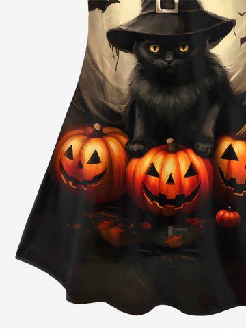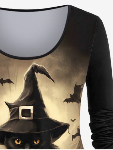 s*****h5Plus Size Pumpkin Bat Cat Wizard Print Halloween T-shirtColor: BLACK Size: LSo darn cute! Nice fit, a bit on the small side.