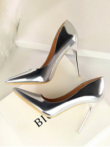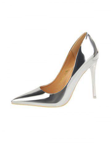 Metallic Stiletto Heel Pointed Toe Pumps - Silver - Eu 41